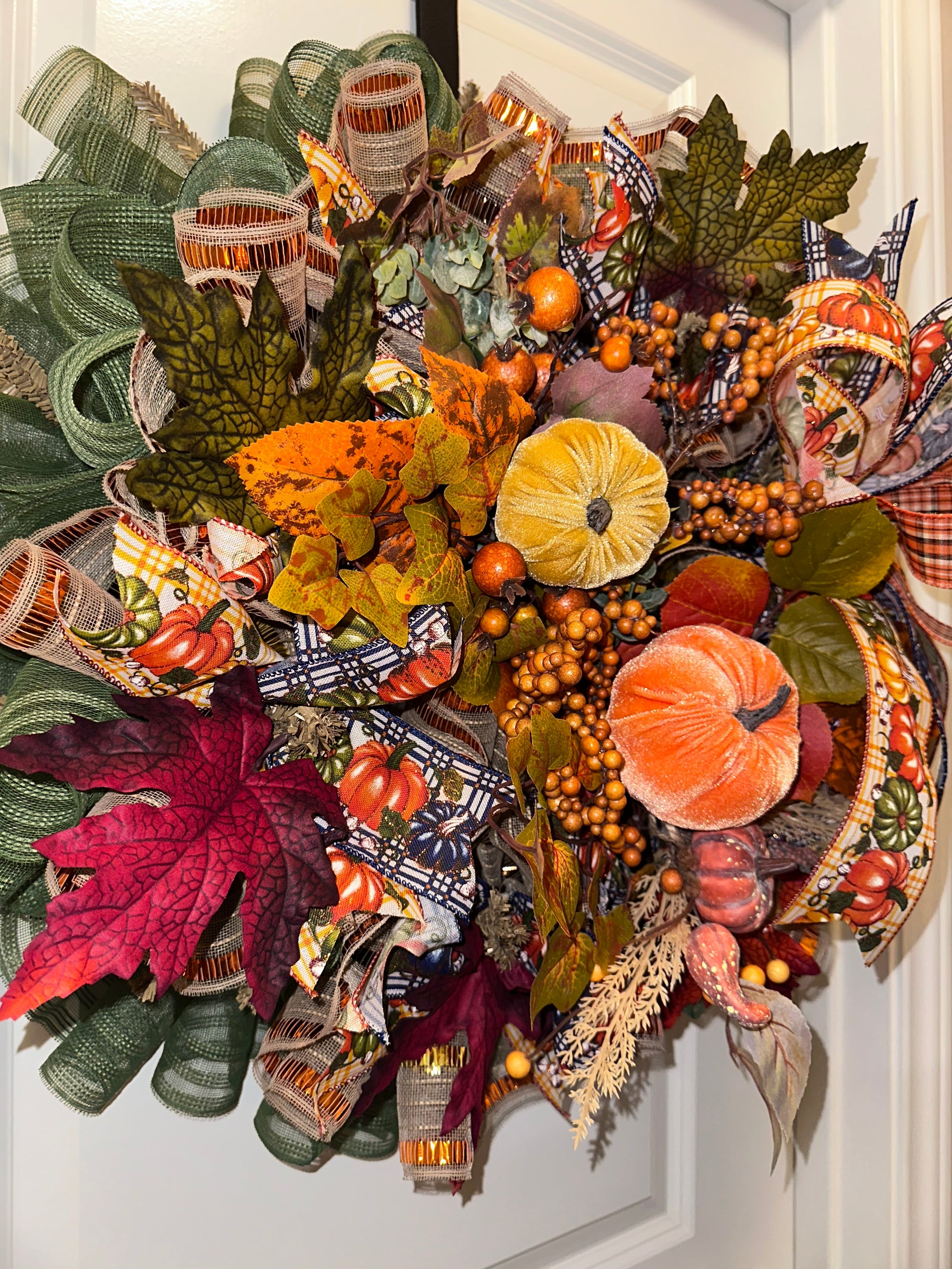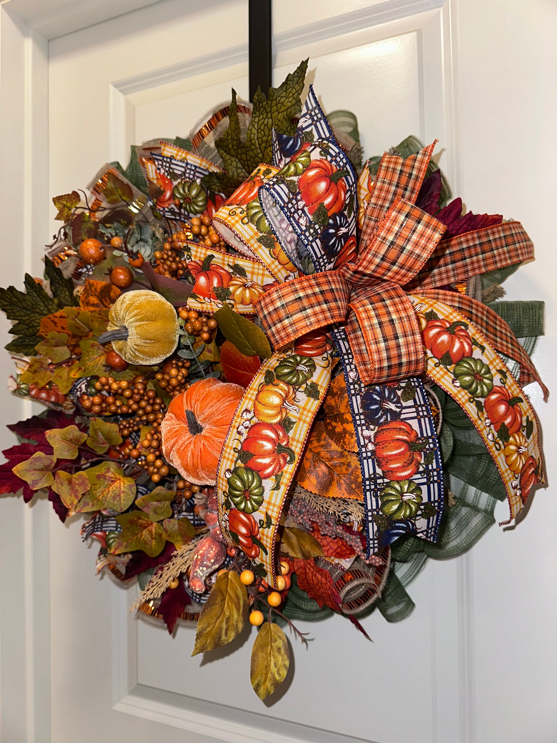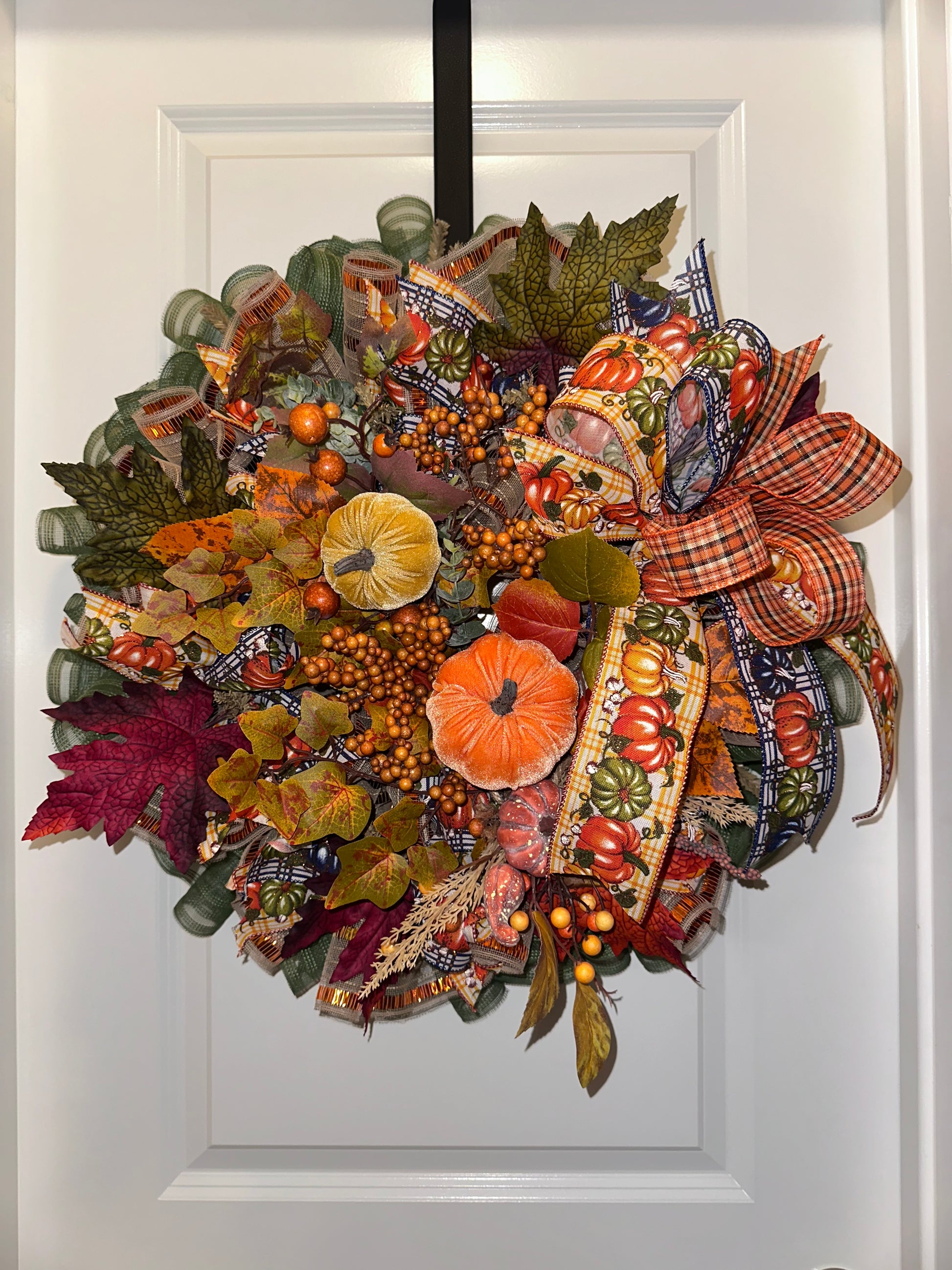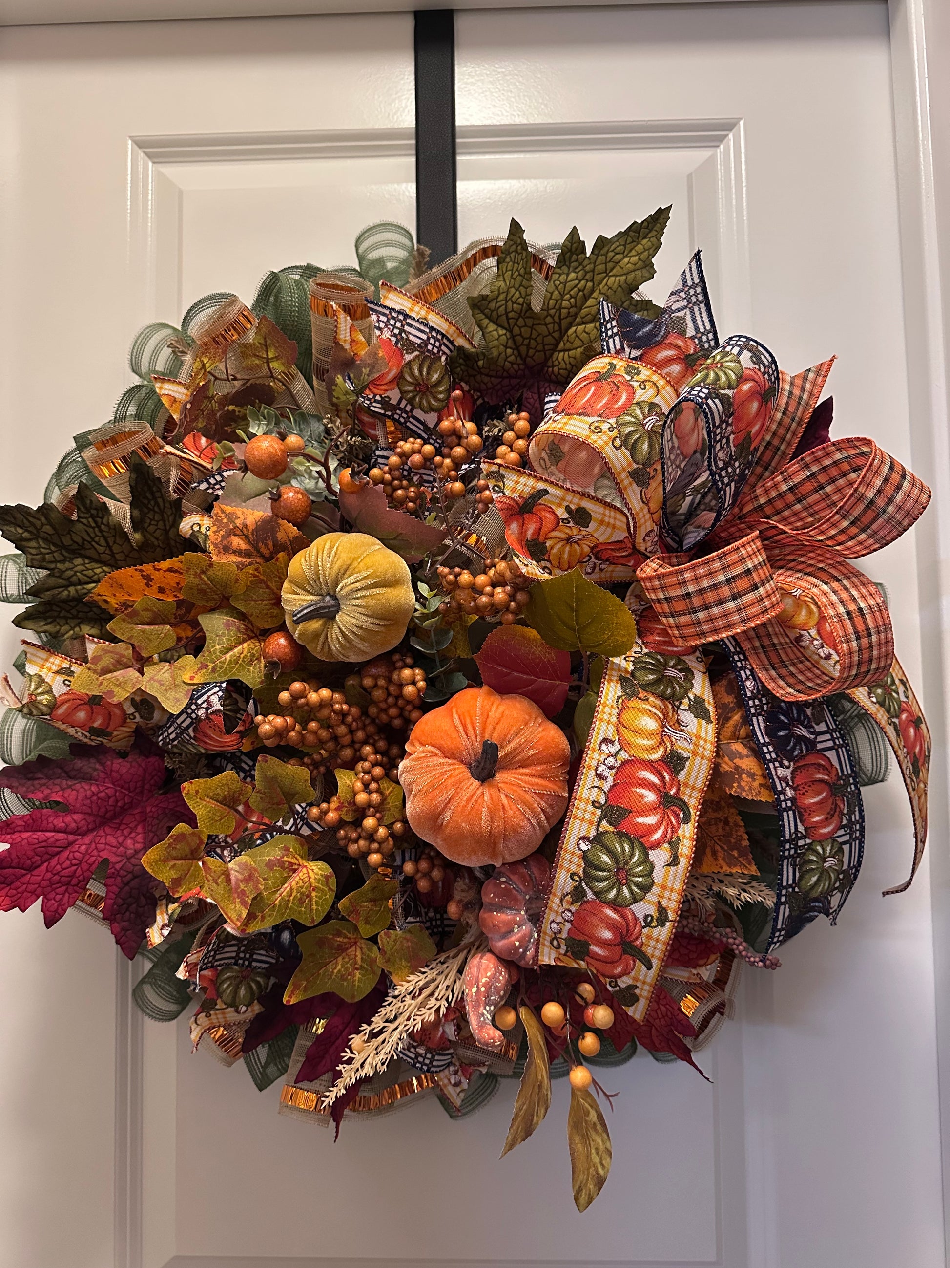 Celebrate the beauty of the season with this expertly crafted Fall/Thanksgiving wreath. Featuring rich autumnal tones and natural elements, it adds a warm, inviting touch to your home décor. Perfect for welcoming guests, this wreath enhances your entryway or living space with seasonal charm while embodying the spirit of gratitude and harvest. Durable and designed for easy hanging, it offers a timeless decoration to enjoy year after year.