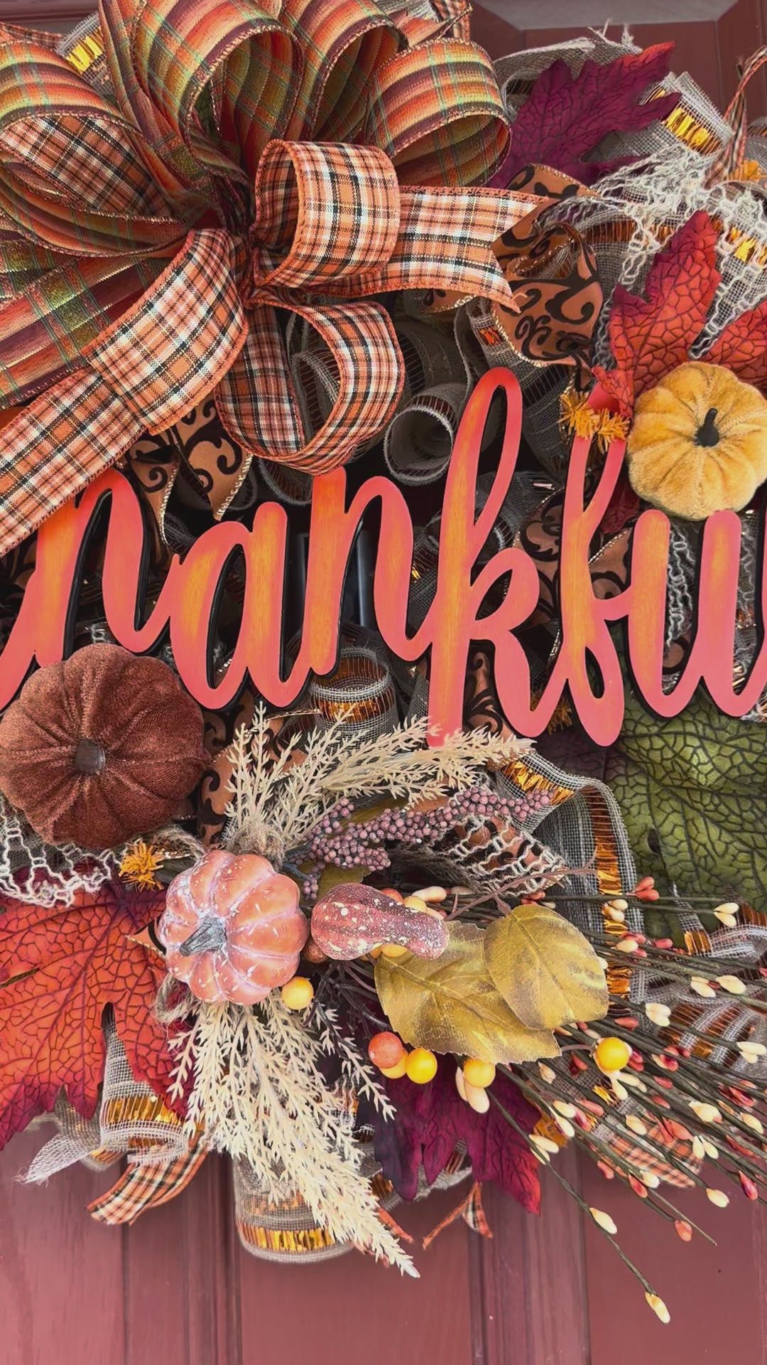Bring the warmth and charm of fall to your home with this handcrafted Plaid Harvest “Thankful” Autumn Wreath. Designed with a rich mix of seasonal accents and a bold ribbon centerpiece, this wreath is the perfect way to celebrate gratitude and the beauty of autumn.